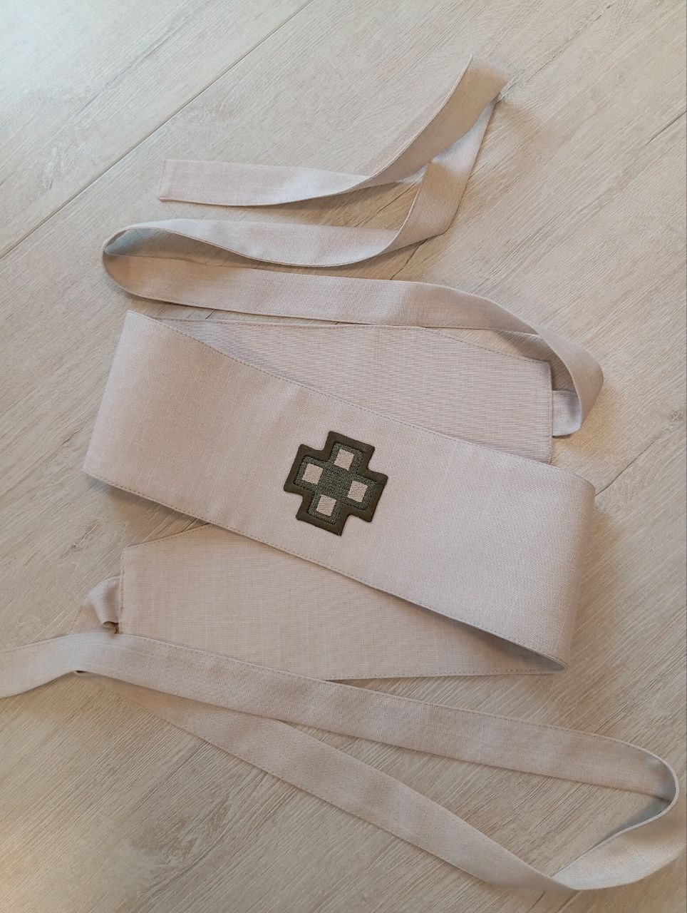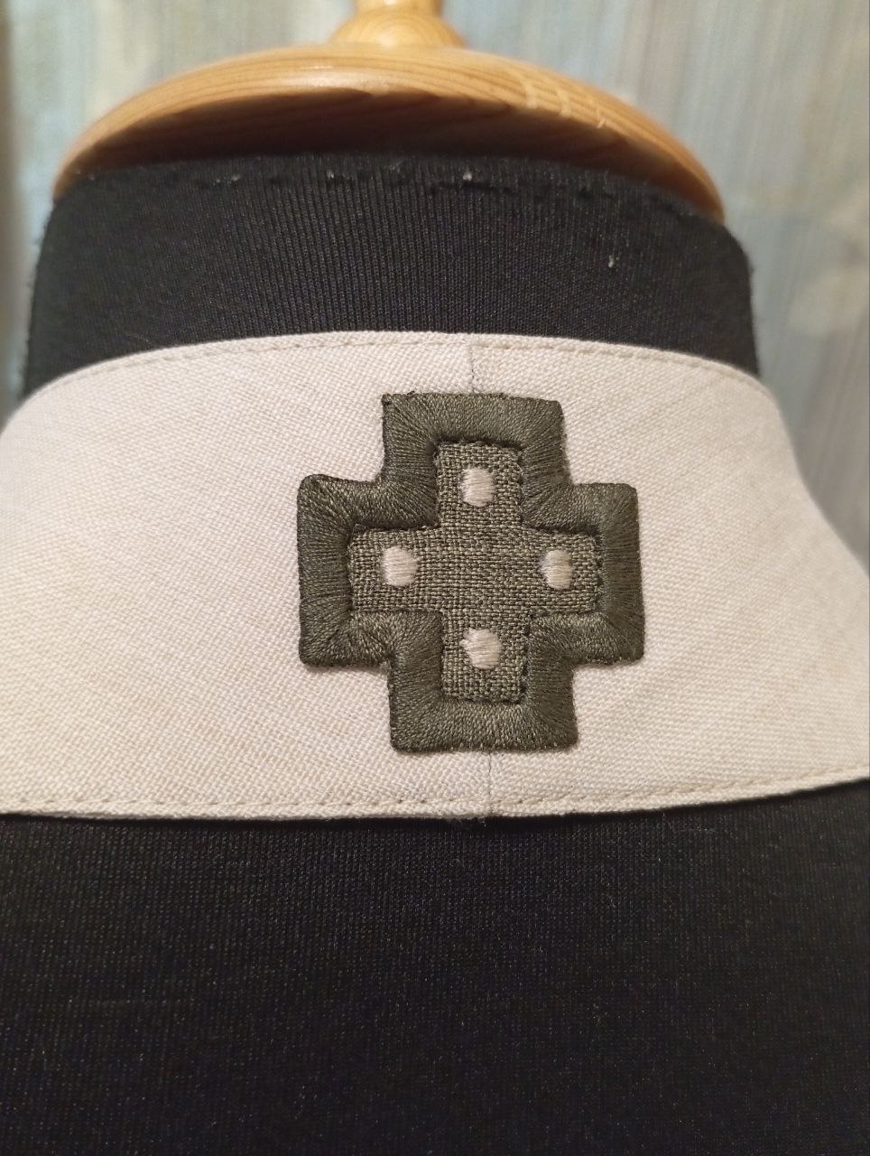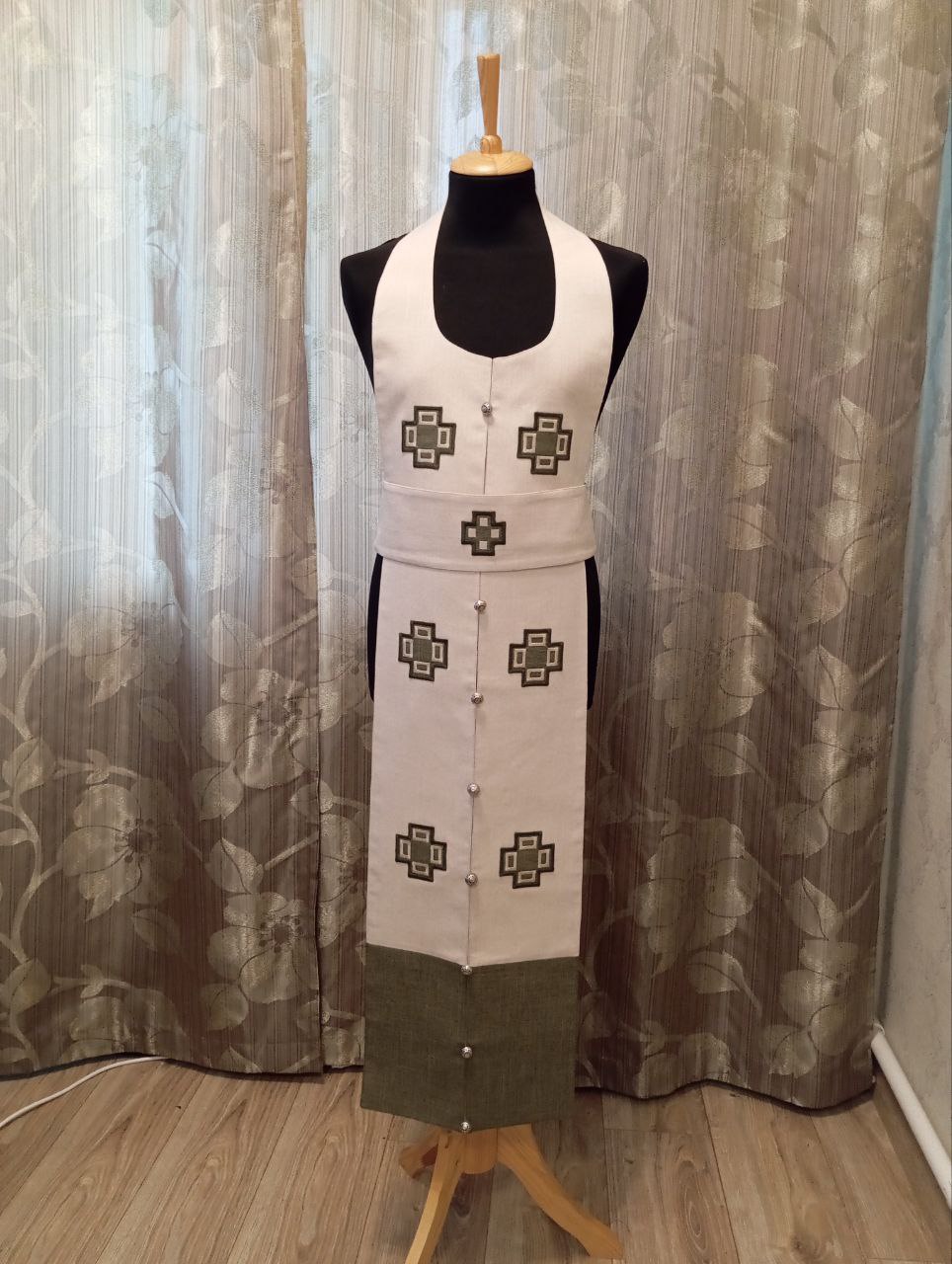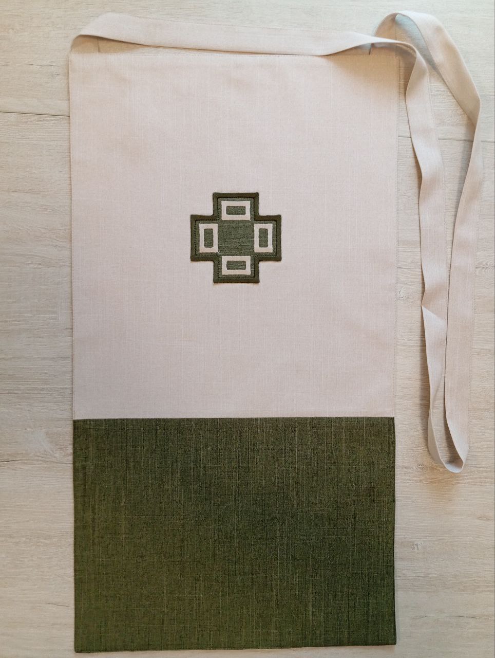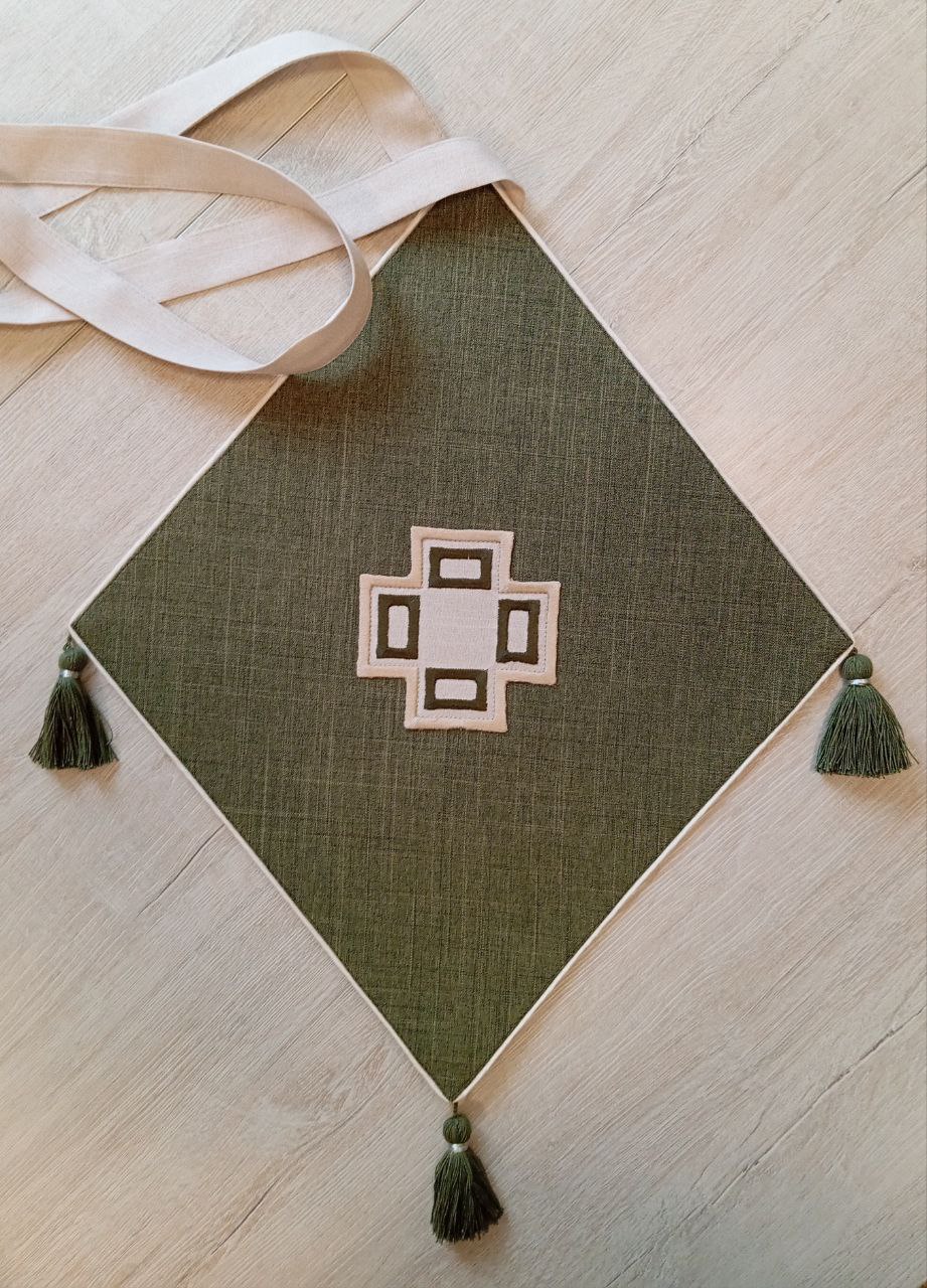 Облачение сшито из искусственного льна (лавсановая нить). У ткани очень интересная неоднородная фактура натурального льна. Она невесома и прочна, но при этом совершенно не мнется. В облачении будет очень легко служить даже в самый жаркий день. Выбрать можно любой из 7 основных богослужебных цветов, вся фурнитура и вышивка будет подобрана. Возможен русский или греческий крой фелони.